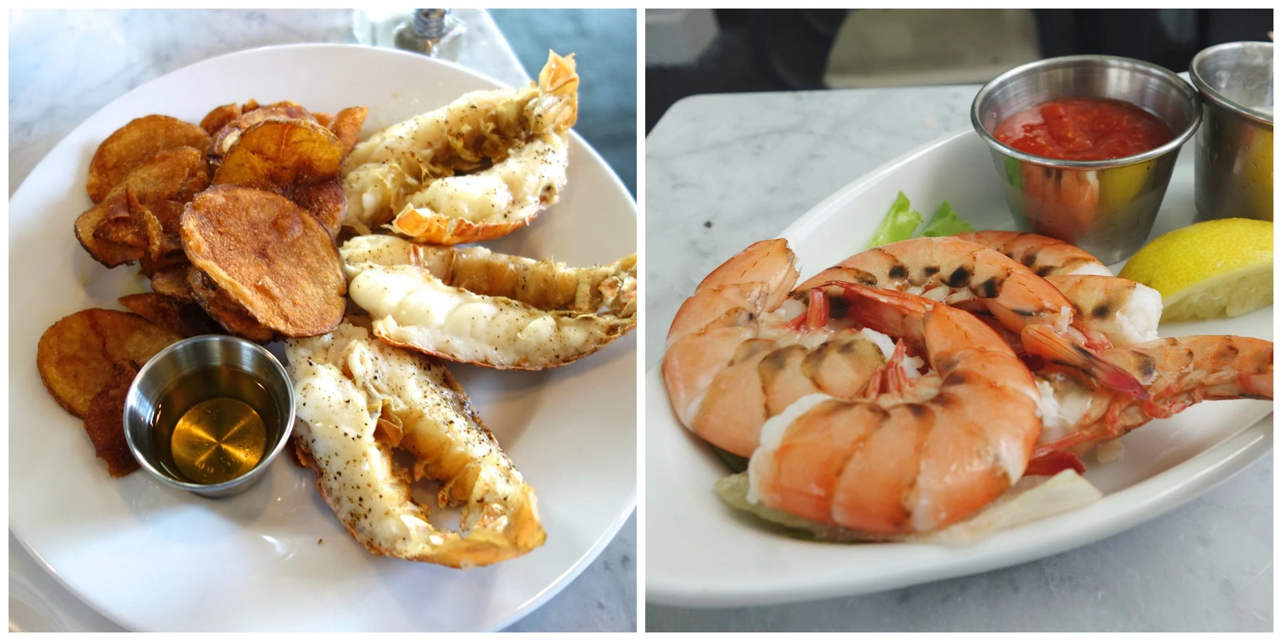 The restaurant pays homage to simply prepared seafood, with some detours into non-seafood territory, including Danny’s famous prime rib. During this visit, we sampled the popcorn conch, grouper crudo, deviled eggs with lobster, a couple of vegetable dishes, and the fancy seafood tower, which included two varieties of oysters, plus clams, shrimp cocktail, crabmeat cocktail, Tasmanian lobster tails, and king crab legs. With a dish like this, where the seafood is served either raw or barely cooked, with nothing but simple dipping sauces, the quality of the raw material cannot be masked; here, everything shined, and all that was needed was a squeeze of lemon, a few drops of the restaurant’s namesake Mignonette sauce for the oysters, or a bit of drawn butter for the lobster and crab meats.