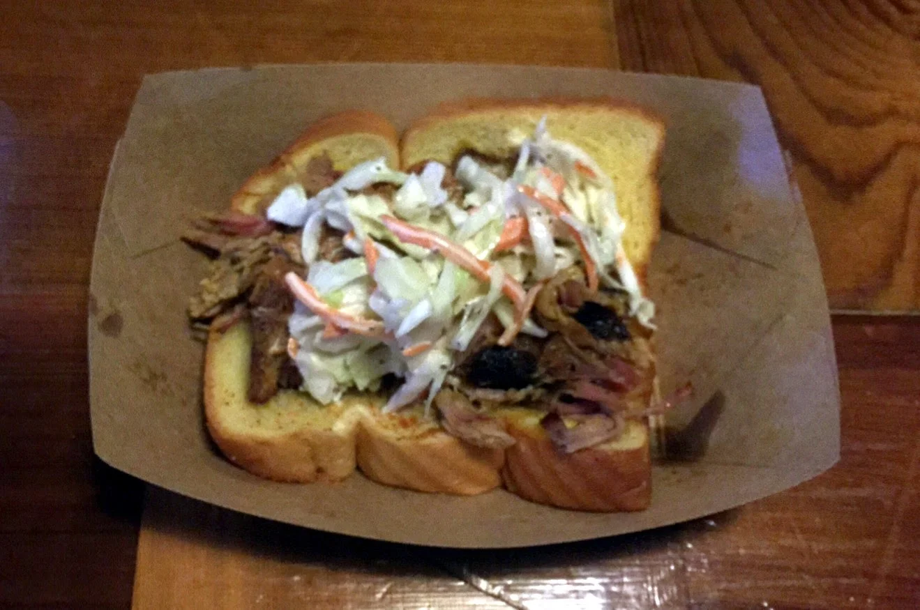 Our third stop, and my favorite, was Pride and Joy BBQ, located at 2800 North Miami Avenue, Miami, Florida 33127. We had redneck tacos, which is pulled beef and coleslaw on piece of bread. I put BBQ mustard sauce on my "taco" and it was awesome. It was sweet, tangy and savory.