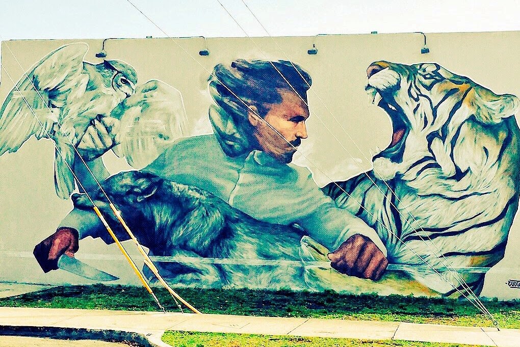 Wynwood is full of art, on walls and in galleries, and a lot of graffiti and colorful street art. This cool huge mural was definitely my favorite art piece in Wynwood!