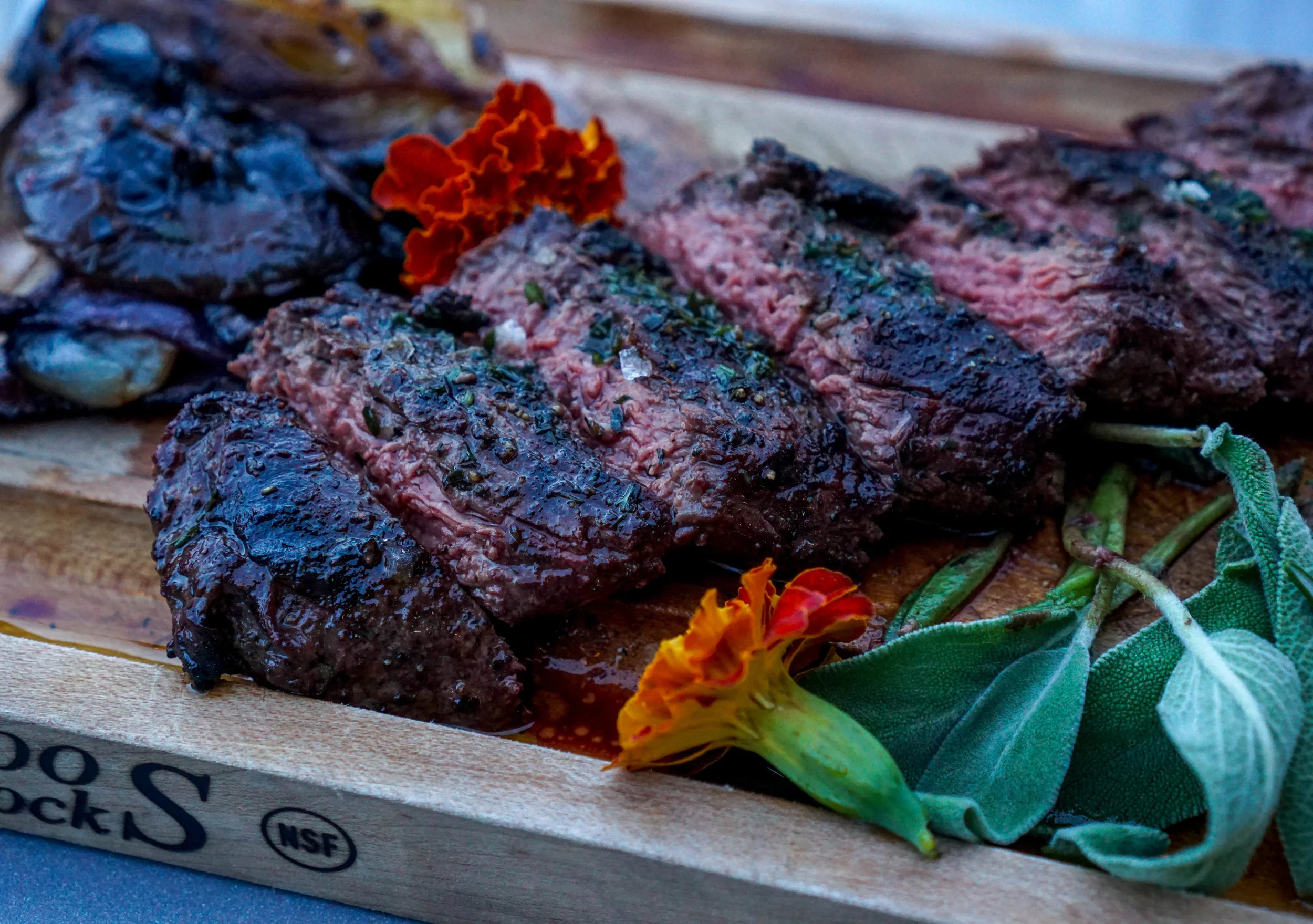 The flavors, especially of the freshly picked vegetables, are really enhanced by this form of grilling. All produce is from local farms, and the menu includes a special condiment selection of fresh herbs and sauces, many created from Little River Cooperative garden out back. The meats and poultry are hormone and anti-biotic free and the fish and seafood are North Atlantic sourced.