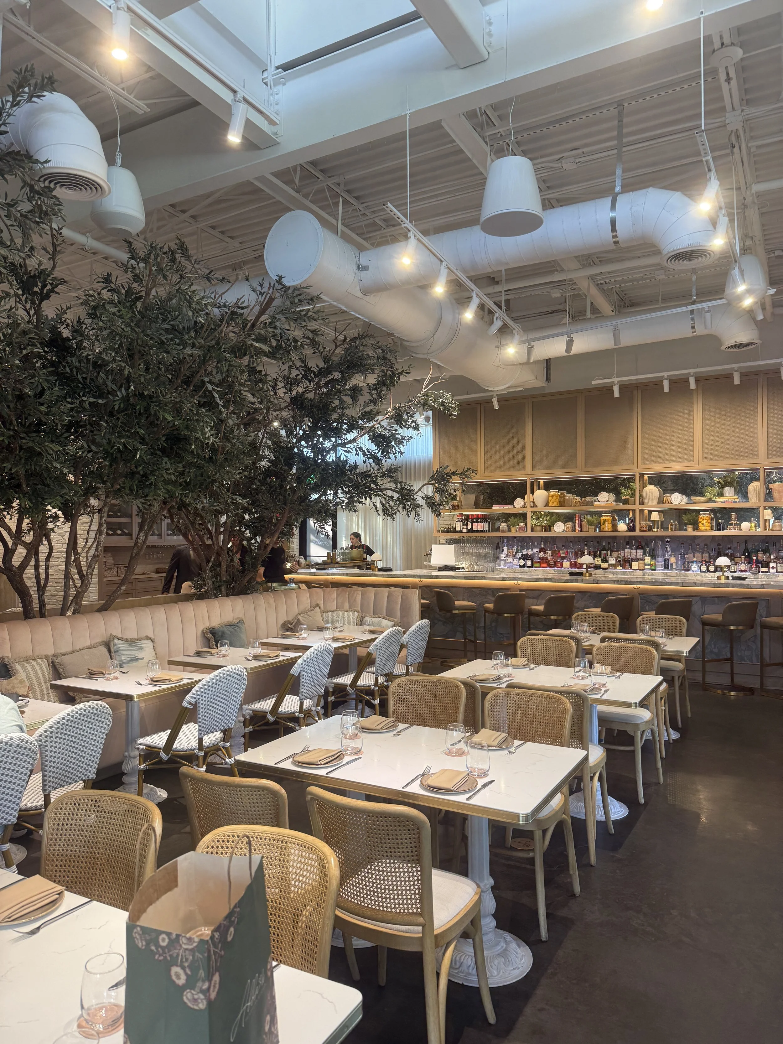 The Aventura location captures all of the coziness and charm of South Beach location but on a much larger scale. In addition to the outdoor garden, there is a full dining room with olive trees, bistro chairs and lots of light wood touches, an open kitchen and full bar area with seating.