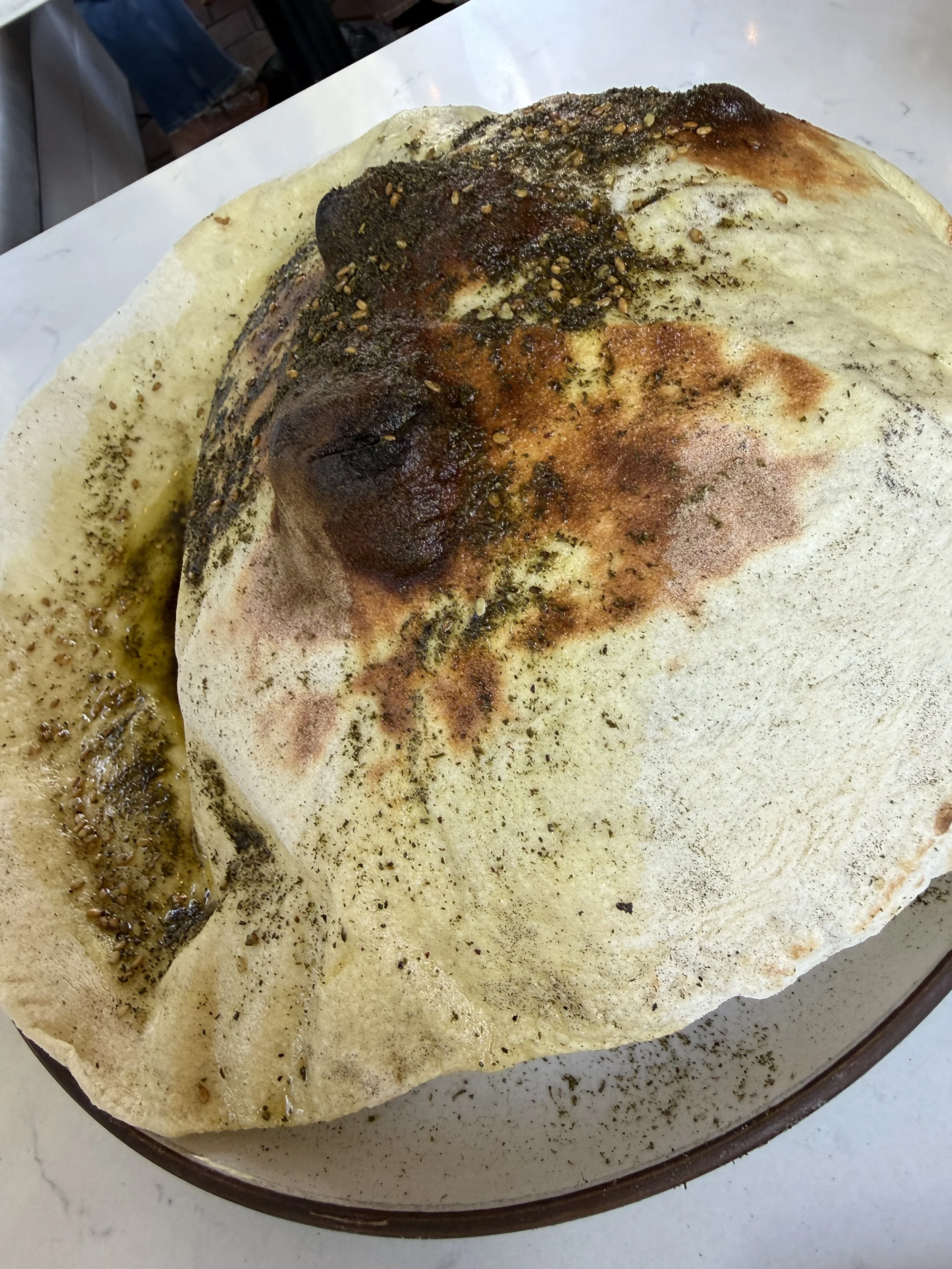 Don’t pass on the opportunity to order the puffy Za’atar flatbread, which is anything but flat and is perfect to rip apart and nibble on throughout the meal.