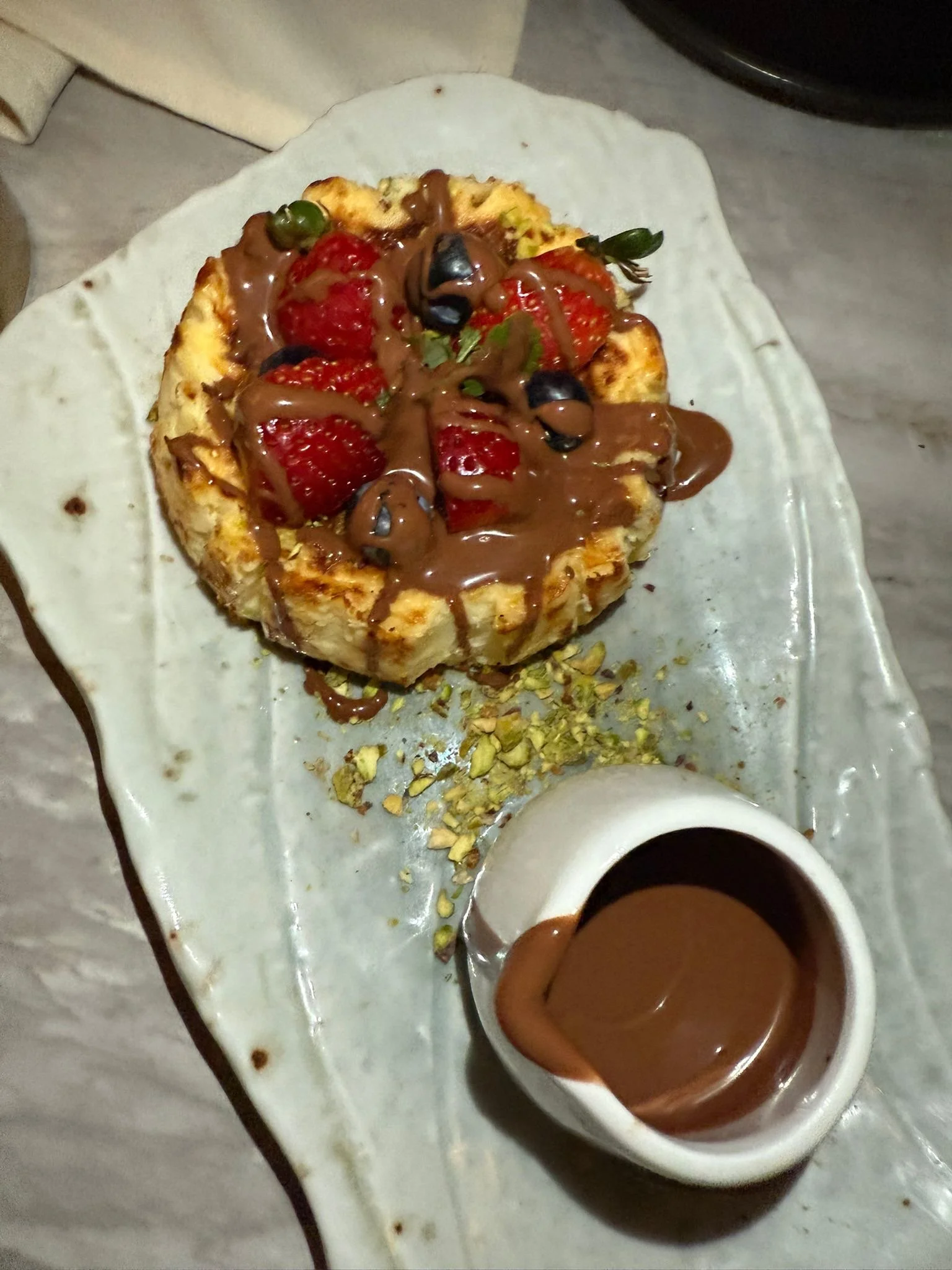And dessert is non-negotiable. The berry-topped cheesecake, served with melted Dubai chocolate for drizzling (or if you prefer, straight from the spoon) is as indulgent as it sounds. A finale that leaves you both satisfied and slightly undone.