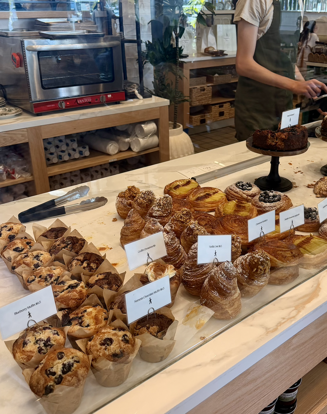 Offering a wide array of freshly made pastries, sourdough breads, and desserts, guests at Madame Olivia can stop for a coffee and pastry or sit down for a full meal.