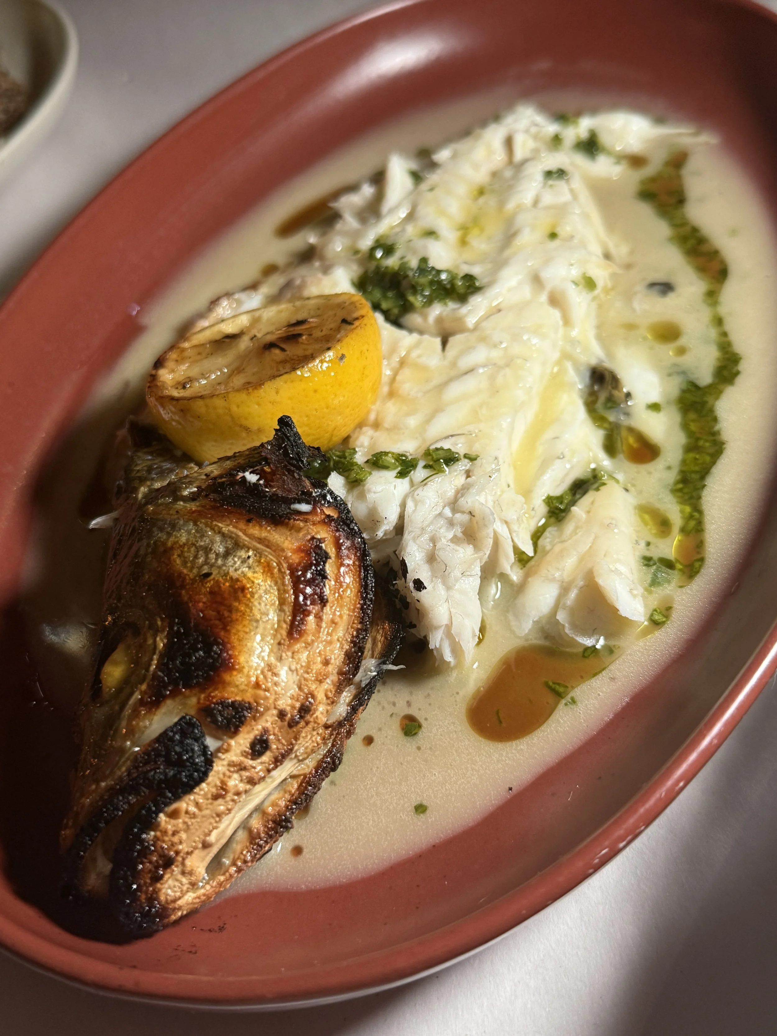 A perfectly prepared Branzino was fileted and deboned and lightly dressed with fresh lemon, herbs and olive oil.