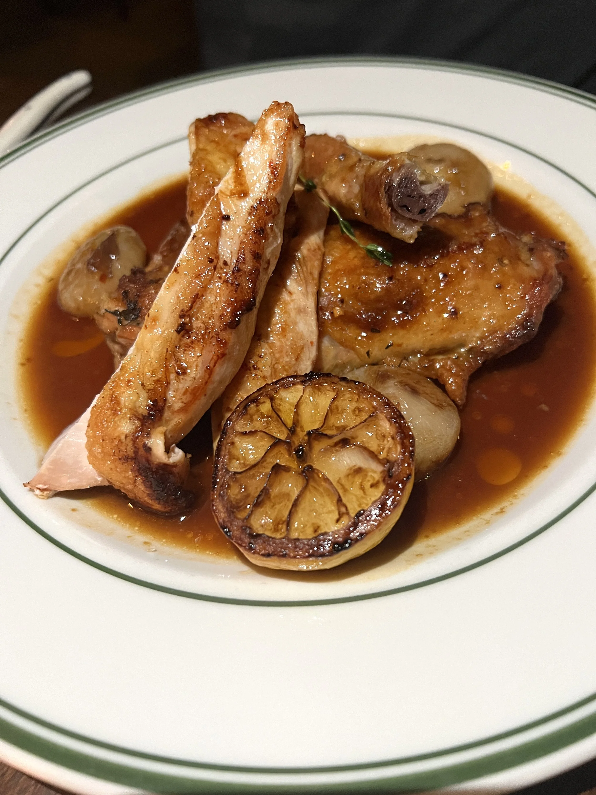 The Pollo Arrosto, an organic half chicken cooked with lots of garlic and thyme, was crispy on the outside, and perfectly cooked on the inside and the sauce was robust enough for dipping our second order of the Gnocco Fritto.